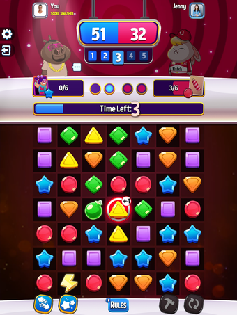 Bermain dengan teman atau melawan lawan dari seluruh dunia dalam kompetisi pertandingan 3 online berbasis giliran yang menyenangkan! Tujuannya adalah untuk menghapus ubin biru dari papan untuk mendapatkan skor yang lebih tinggi.